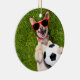 Ornamento De Cerâmica Cachorro com bola de futebol no Natal verde