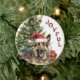 Na frente deste ornamento de Feriado está a imagem de um lindo Cachorro German shepherd vestindo um chapéu de Papai Noel vermelho e branco. O cachorro pop em frente a uma árvore decorada de Férias, e é envolto em uma corda de luzes festivas. O texto vermelho do lado diz "JOVEM". No verso, o texto vermelho e verde diz MERRY CHRISTMAS", e há campos de texto adicionais para você personalizar. Faça-o dizer o que quiser!