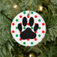 Pasta de cão de desenho em preto. Ornamento temático de Natal com bolinhas vermelhas e verdes. Dar uma ideia para pessoas que amam cachorros.