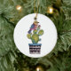 Ornamento De Cerâmica Cactus E Ave Arco-Íris Em Aquarela