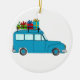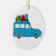 Ornamento De Cerâmica Caminhão de Natal azul com presentes