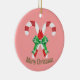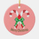 imagem de duas canetas doces vermelhas e brancas amarradas com um arco verde. o texto está em ambos os lados e pode ser alterado ou excluído.