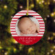 Celebre o primeiro Natal do bebê com este ornamento listrado vermelho. Personalize com uma foto, nome e ano.