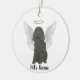 Sempre é difícil colocar em palavras a simpatia sentida quando alguém querido perde seu amado animal de estimação. Honre a memória deles com esses preciosos e atenciosos enfeites personalizados de pêsames. Este design apresenta uma pintura de um cocker spaniel preto com asas de anjo e um halo. Para os presentes mais doces, combine-o com um cartão de saudação correspondente, uma impressão de arte ou outro item da minha coleção! Para ver mais trabalhos e saber mais sobre esta artista, visite-a em: www.theprintsprincess.com e www.instagram.com/theprintsprincess