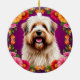 Ornamento De Cerâmica Cão Fluffy Adorável com Flores