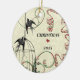 Nota Musical Vermelha e Verde Rindo Whimsicamente para Anel no Feriado Cheer. Foto da Família Aves Vintage e Gaiola de Pássaros em Ornamentos de Foto de Natal Damask