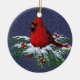ORNAMENTO DE CERÂMICA CARDEAL DO NATAL: PÁSSARO: NEVE: ARTE