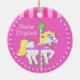 O ornamento de cavalo de carrossel cor-de-rosa de 1rua de Natal do bebê com fotografia. Alterar texto para qualquer ocasião.