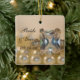 Comemore seu noivado ou núpcias com a elegante Princesa Diamond Ring e Pearls Wedding Ornament. Personalize-o com os nomes pessoais da noiva e noiva, data de noivado ou data de cerimônia de casamento. Este clássico ornamento de casamento personalizado apresenta uma fotografia de perto de uma princesa quadrada cortada em noivado de diamante e colar de pérolas brancas.