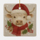 Ornamento De Cerâmica Casca russa com Vaca Highland com Santa Hat