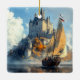 Uma ilustração digital de um castelo, mostrando as paredes torrenciais, torres majestosas e detalhes intrincados como ele estava no seu auge.