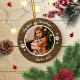 Cat Pet Primeiro Natal Simples Foto Rustic Blue Cerâmica Ornament