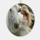 Ornamento De Cerâmica Cavalo Branco e Garota