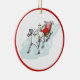 Este design é um cavalo branco puxando uma carruagem vermelha através da neve branca. As estrelas ouros são colocadas à volta da carruagem. Uma borda vermelha foi adicionada à frente e atrás. Este ornamento faz um presente de excelente ou pendura-o na sua árvore nos feriados.