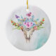 Ornamento De Cerâmica Caveira Animal Boho com Borboletas e Flores
