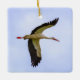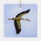 Cegonha branca europeia, cicônia, voando no céu azul e nublado