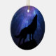 Este ornamento de na moda é perfeito para amantes de lobos. Ovelando na lua, o lobo fica na beira de uma rocha, chamando para a noite. Imagem de silhueta preta com fundo celeste.