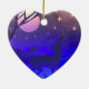 Este adorável coração de cerâmica de inverno apresenta uma pacífica cena noturna azul-tônica da silhueta de um cervo na floresta com um fundo estrelado. Um belo presente de Natal, e uma decoração incomum de árvores.