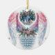 Céu em nossa casa Angel Wings com retrato no ornamento cerâmico Traga muito mais alegria para sua árvore com um ornamento cerâmico personalizado. Adicione fotos da família, imagens e mensagens pessoais a ambos os lados deste ornamento. Um fio de ouro torna fácil pendurar esta fantástica marca de sempre.