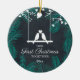Chalkboard Ave Nosso Primeiro Natal Junto Com O Ornamento Cerâmico. Personalize com suas informações personalizadas tanto na frente quanto na parte traseira.