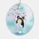 Ornamento De Cerâmica Cherry Blossom Kokeshi Doll Pink Turquoise