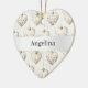 Ornamento De Cerâmica Chic Cream Hearts Silver Ribbon Christmas
