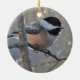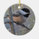 O chickadee preto-tampado adorável empoleirou-se em um ramo em um pinheiro