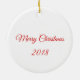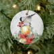 Este ornamento cerâmico caracteriza uma ilustração digital da aguarela de um Chickadee adorável, sentando-se em uma lanterna festiva decorada com as poinsétias e as hortaliças do inverno, comendo algumas bagas vermelhas. O texto no reverso é inteiramente customizável, para que você mude como você deseja.
