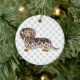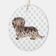 Ornamento De Cerâmica Chocolate & Tan Dapple Long Hair Dachshund & Text