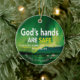Inspirational Christian Scripture ORNAMENT mostrando a bela imagem das luzes do Norte com o verso Bíblia dos Provérbios 3:5 - TRUST IN THE LORD. A mensagem diz que as mãos de Deus estão seguras. Parte da Coleção de IMPRESSÕES INSPIRATIVOS por Designs Bereanos.