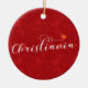 A decoração/ornamento de Natal com um design com script, mostra a bandeira de Freetown Christiania em um coração.