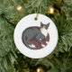 Ornamento De Cerâmica Cinza Gato Deitado