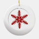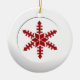 Ornamento De Cerâmica Círculo Branco Metálico e Floco de Neve Vermelho