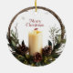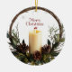 Celebrar a magia da estação com este Ornamento de Círculos Cerâmicos de Velas de Terra Clássica de Madeira. Apresentando uma coroa de videiras rústica adornada com pinecones, evergreens e uma vela brilhando, esta design traz charme da floresta eterno para sua árvore de férias. Criado para amantes do estilo de fazenda e confortável decoração de inverno, faz um belo manejo para famílias, recém-casados, ou qualquer pessoa que aprecie o calor das tradições de Natal. Perfeito como um ornamento ingênuo ou um tesouro de feriado colecionável, ele emparelha elegância rústica com espírito festivo. Adicione um toque de beleza botânica e brilho de vela às suas celebrações este Natal.