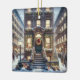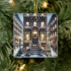 Enfeites de natal personalizado. Ilustração de um apartamento festivo na cidade de Brownstone, no meio da cidade.