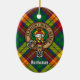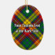 Crachá da crista buchana rodeado por uma correia e fivela sobre fundo de tartã clã. Texto personalizado de ambos os lados.