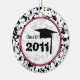 Um ornamento da graduação que caracteriza um fundo preto do splatter da pintura. Projete o círculo completo interno esboçado no rosa lê uma "classe de 2011" e caracteriza um boné de formatura.