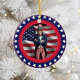 • This classic round ceramic ornament features a striking digital illustration of bold American symbols in vivid red white and blue. It makes a thoughtful, long-lasting keepsake perfect for any patriotic holiday or occasion throughout the year.