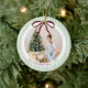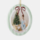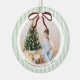 Ornamento De Cerâmica Classic Green Stripes Red Bow Christmas