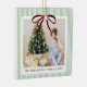 Ornamento De Cerâmica Classic Green Stripes Red Bow Christmas