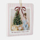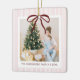 Ornamento De Cerâmica Classic Pink Stripes Red Bow Christmas Ceramic Orn