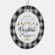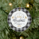 Este ornamento tem um lindo e clássico padrão de xadrez de búfalos com cores de preto e cinza. O trabalho de arte diz "Desejamos-lhe um Natal muito feliz" e tem uma adorável rena em cores douradas. O trabalho de arte de rolagem é muito elegante. Você pode personalizá-lo com o ano.