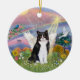 Ornamento De Cerâmica Cloud Angel - Preto e Branco Cat Angel