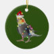 Ornamento De Cerâmica Cockatiel com o Natal do Chapéu