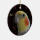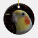 Enfeites de natal bonito com uma fotografia de uma galinha com grandes corações e o nome da ave em um dos corações. Você pode mudar o nome para o que quiser. Presente perfeito para o amante da coquetel!