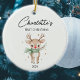 Este ornamento "Bebê Primeiro Natal" apresenta um veado de aquarela fofo com nome e ano personalizados.