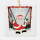 Um presente de Enfeites de natal de lacrosse criativo, com Papais noeis segurando um lax na frente do objetivo. Para personalizar editar texto para adicionar nome e ano.