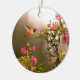 Foto de um colibri rufous em vôo, pollinating algumas flores de um arbusto de corinto de florescência vermelho na primavera.
