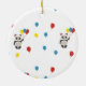 Celebrações do dia do panda nacional, um urso panda com balões coloridos em fundo branco.