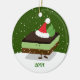Um Enfeites de natal comida divertido com um sorridente bar Nanaimo vestindo um chapéu de Papai Noel. O bar de sobremesa feliz está parado sobre um fundo de neve e o design inclui um ano personalizável. Você encontrou este ornamento, então claramente era a Mint. Simplesmente adicione seu ano, adicione este ornamento ao seu carrinho e aproveite-o na sua árvore de Natal. Mint Nanaimo Bar Santa Comida Ano Natal Ornamento Cerâmico Sweetsham Comida Arte | ©Melissa Patton Artist/Illustrator